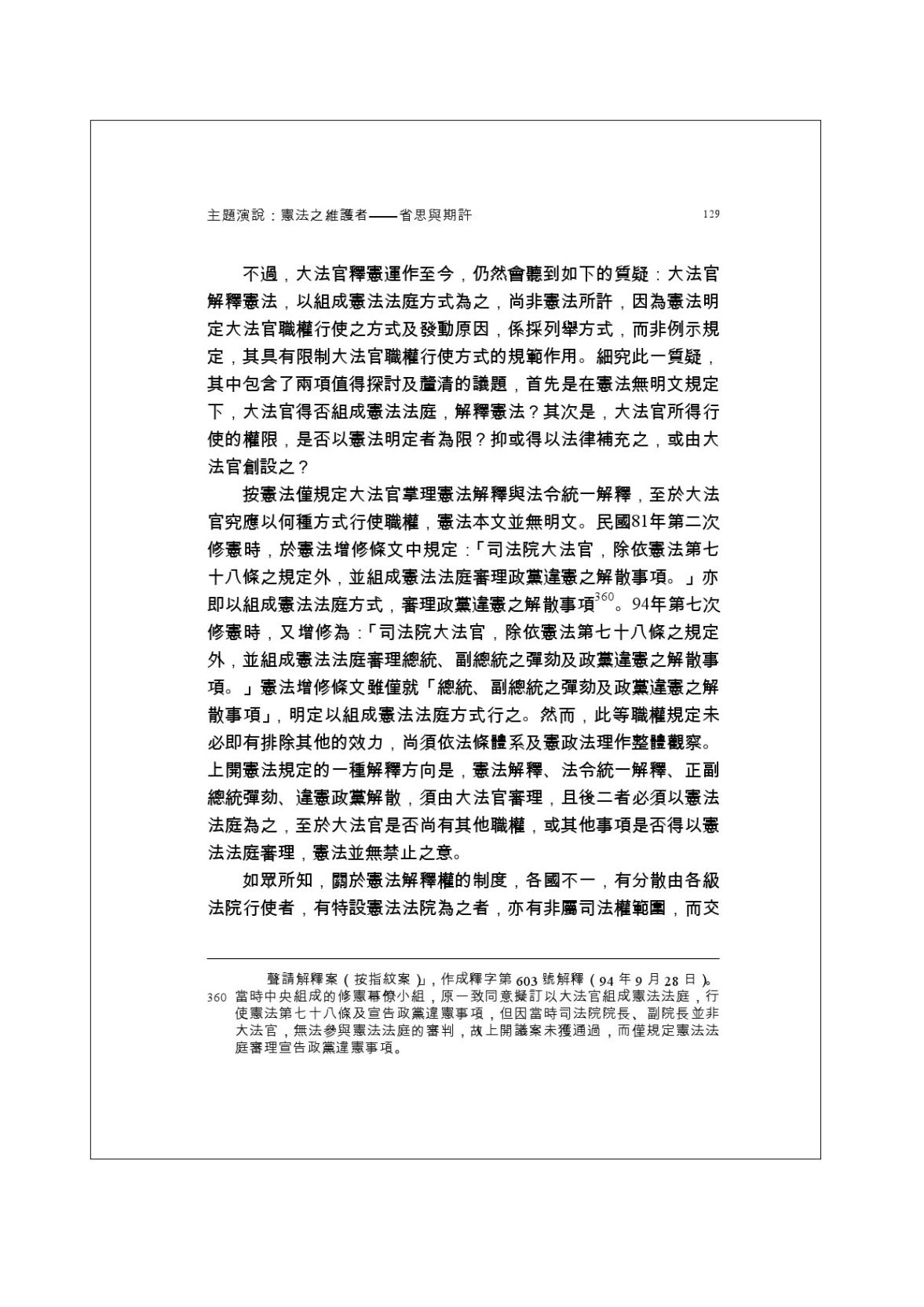 憲法之維護者—省思與期許主題演說 - page 129