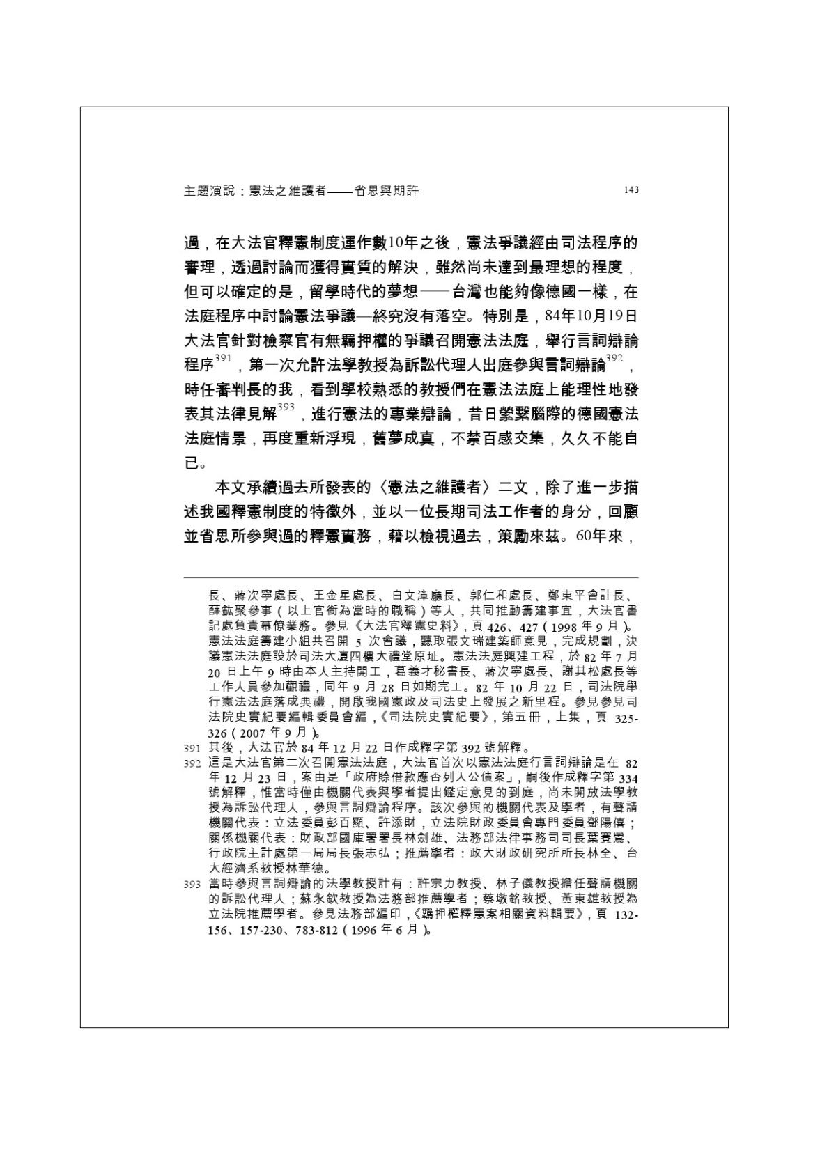 憲法之維護者—省思與期許主題演說 - page 143
